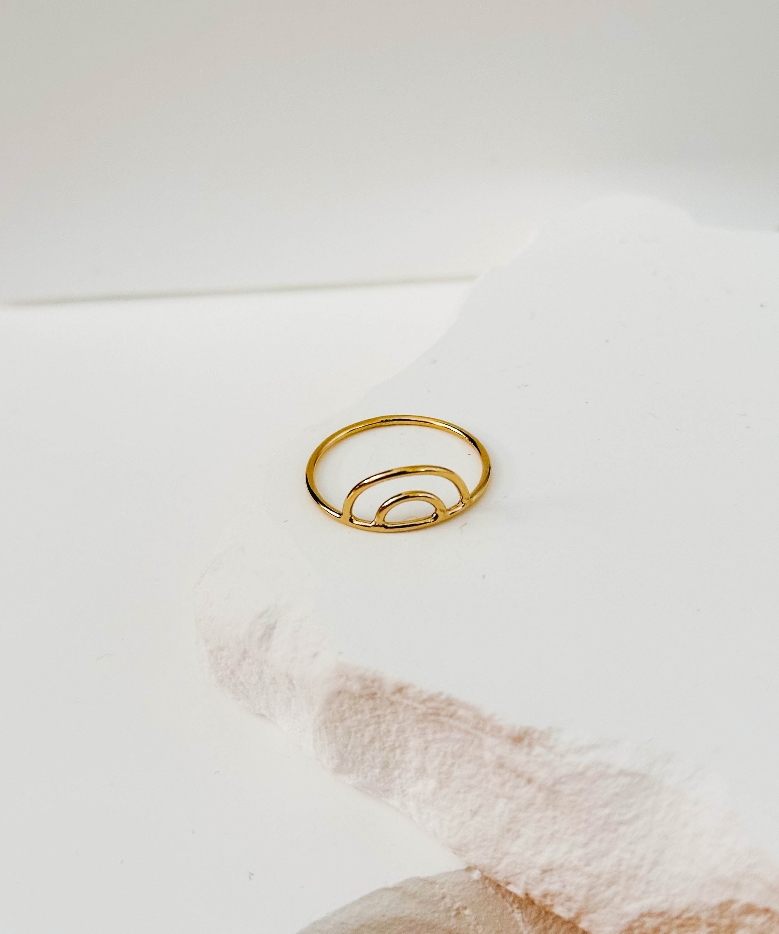 dainty, shower-safe rainbow arch ring