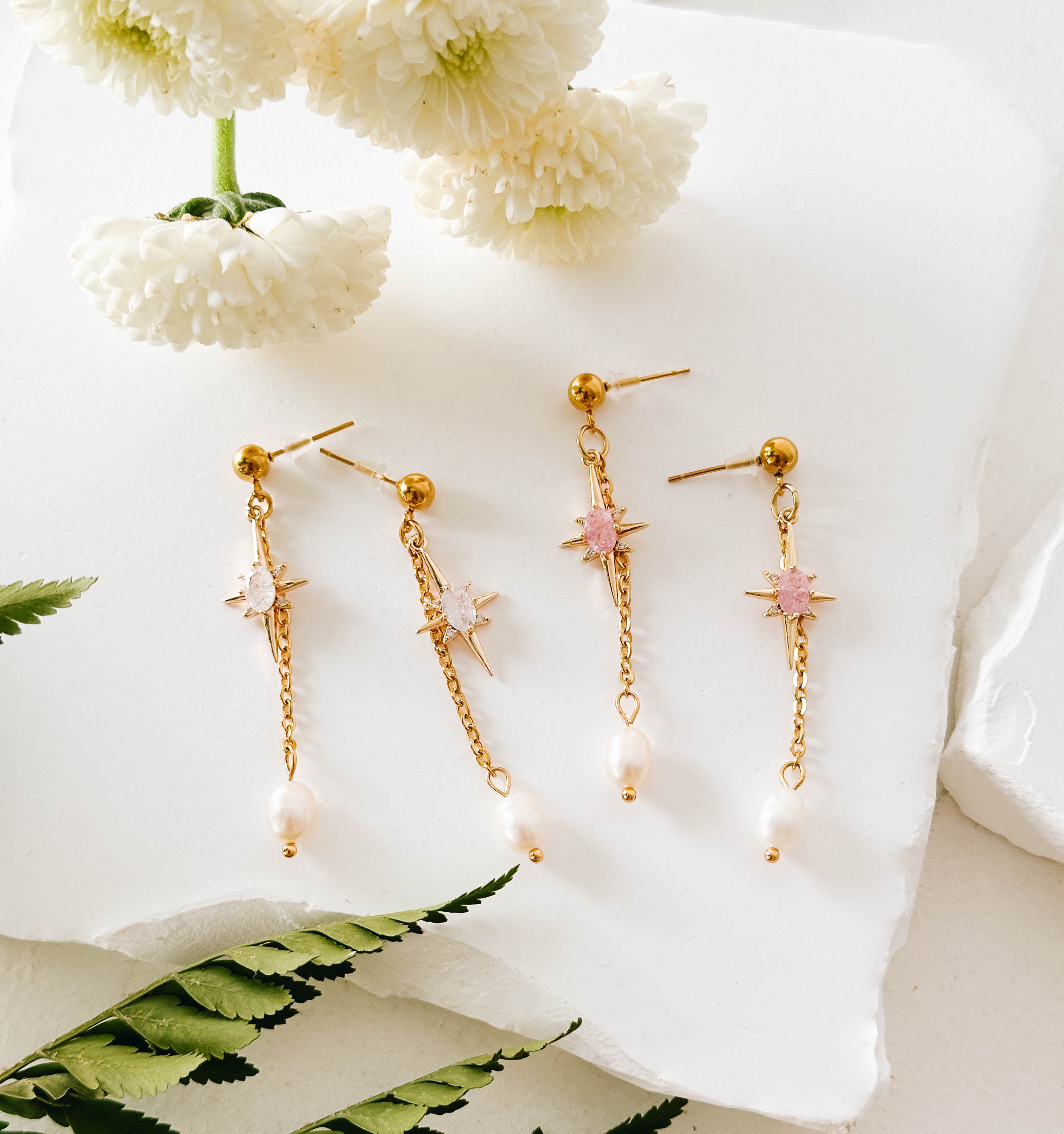 our best-selling starburst earrings available with white or pink stones. please note, as these are natural freshwater pearls, the size, shape and colour will vary between earrings.