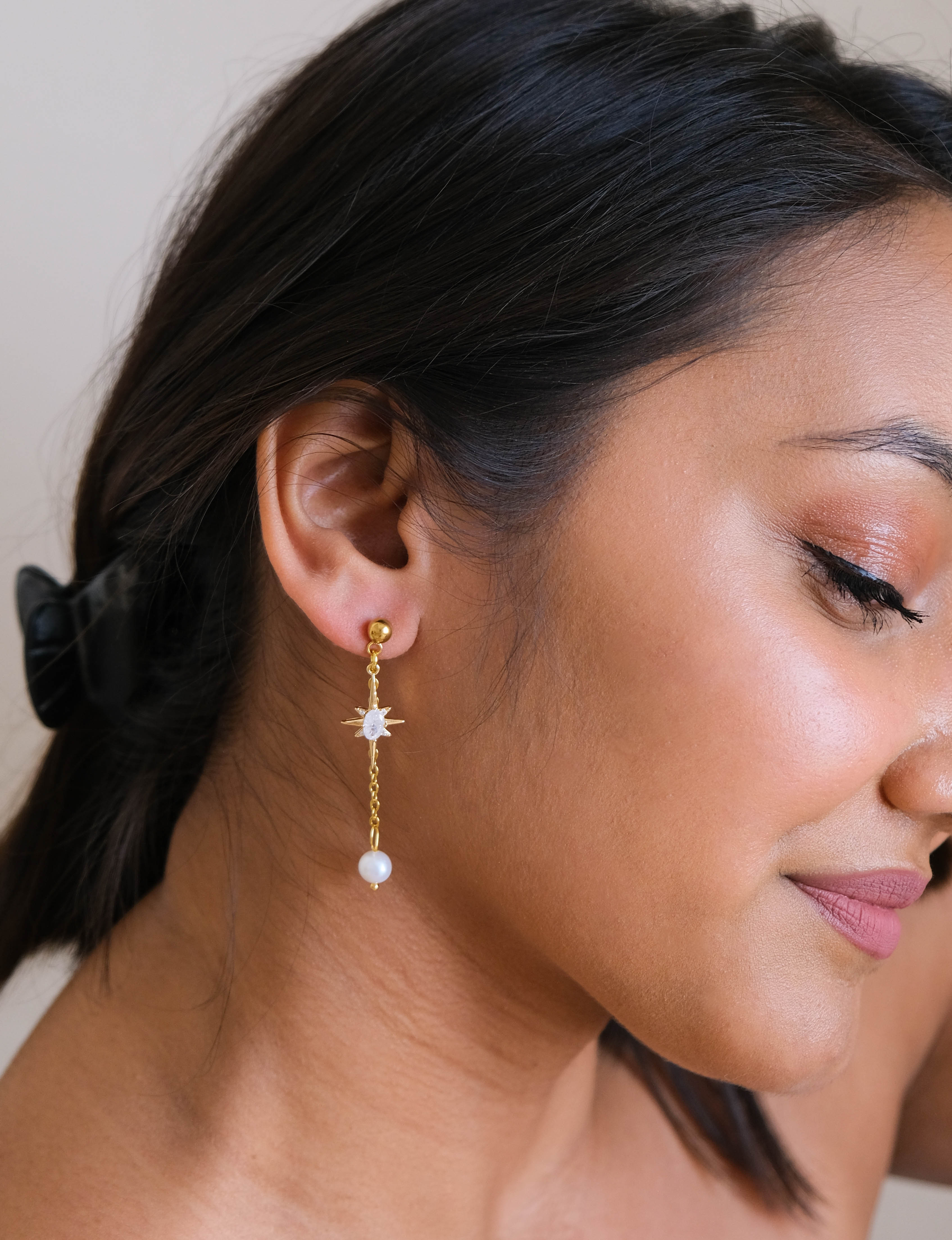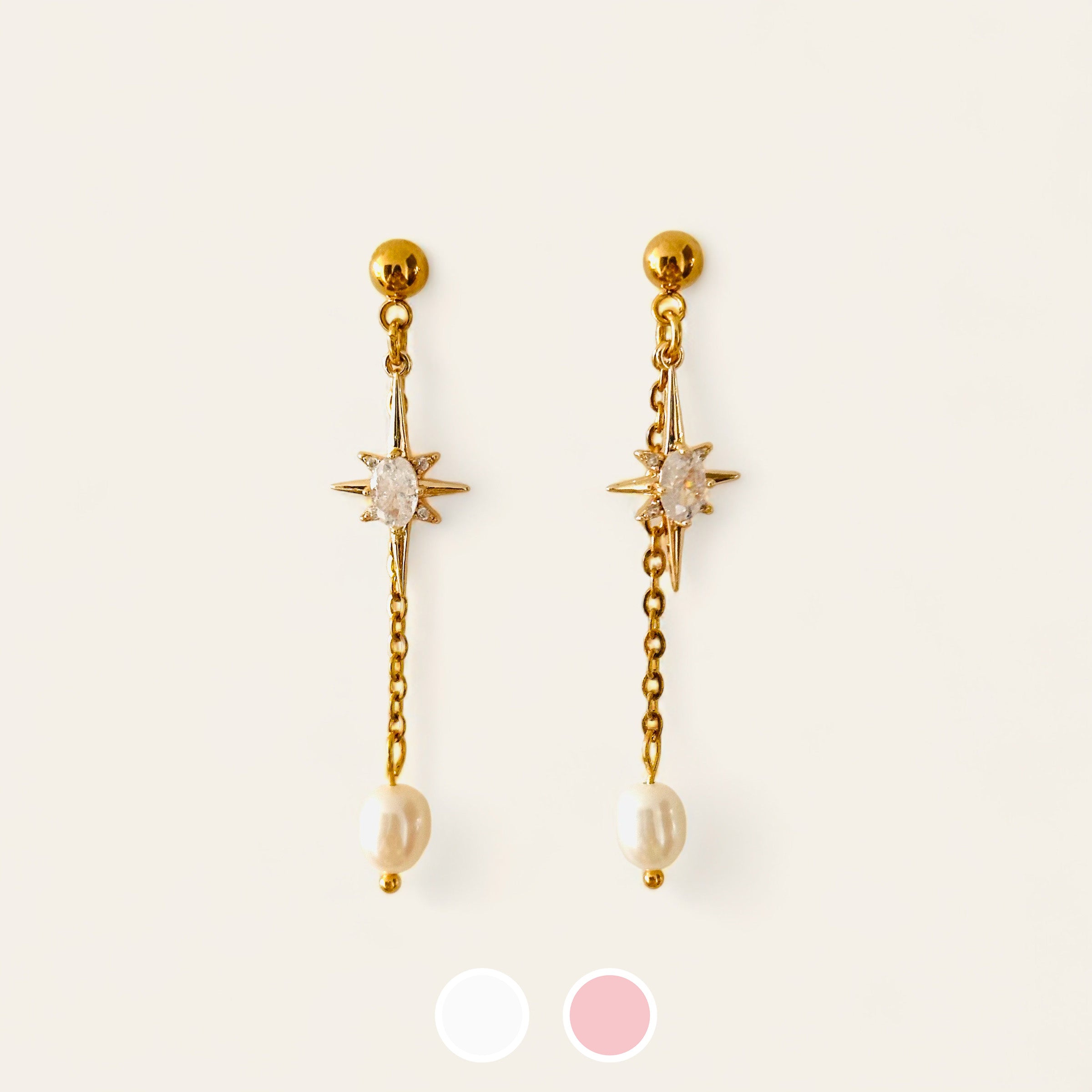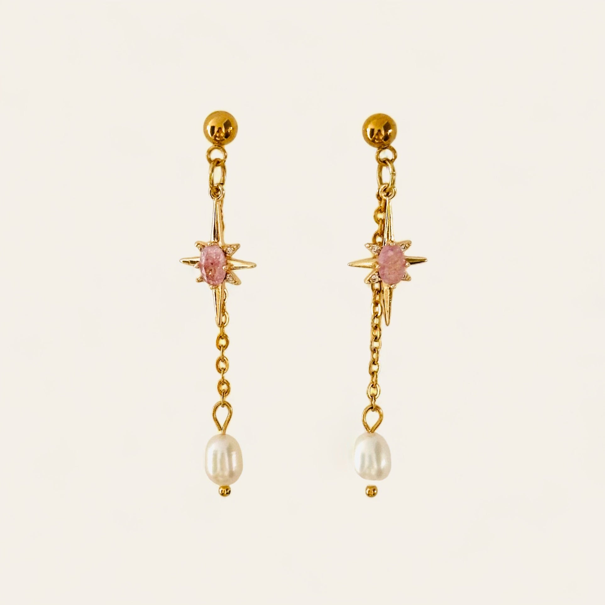 materials: 18k gold-plated surgical grade stainless steel + freshwater pearls + zircon stars