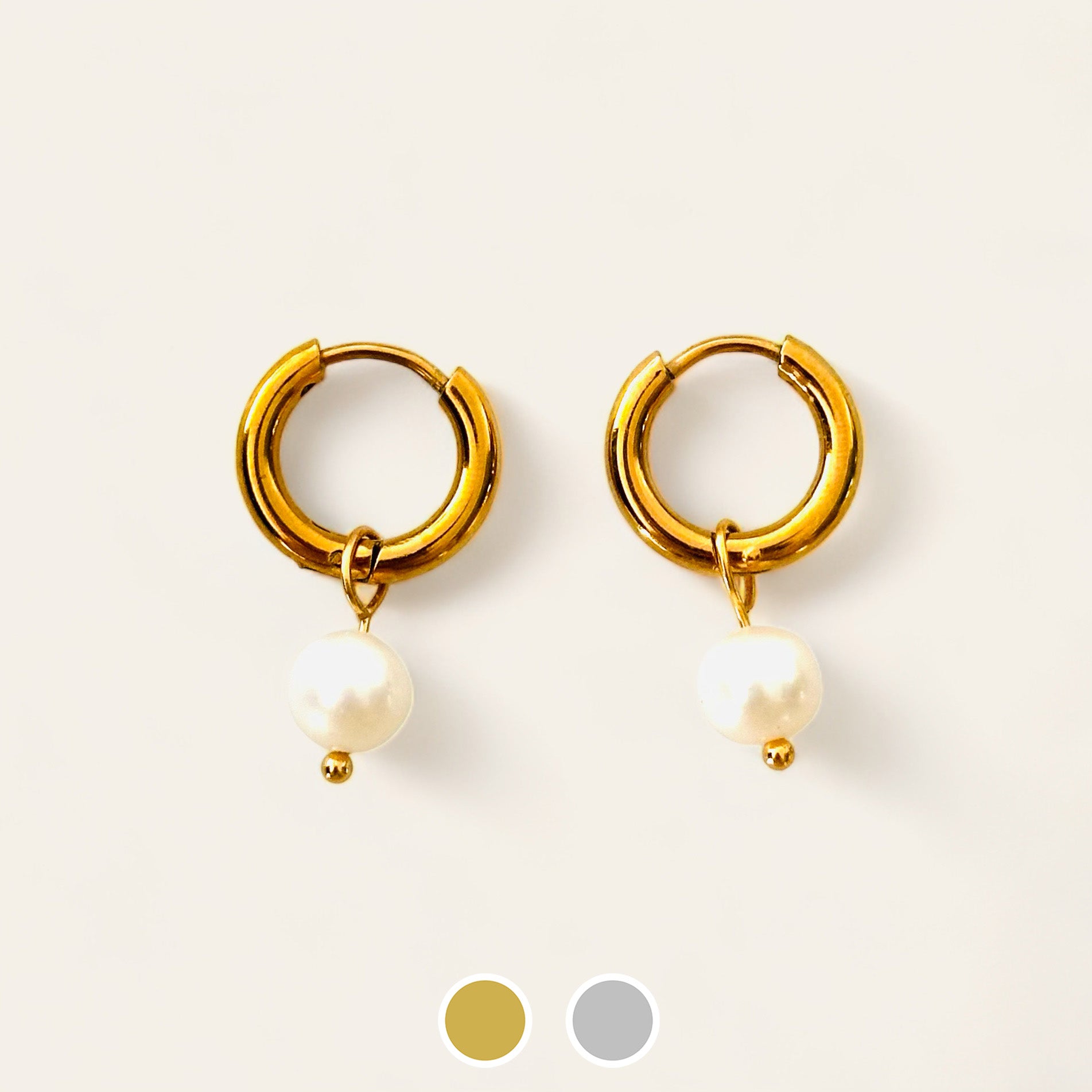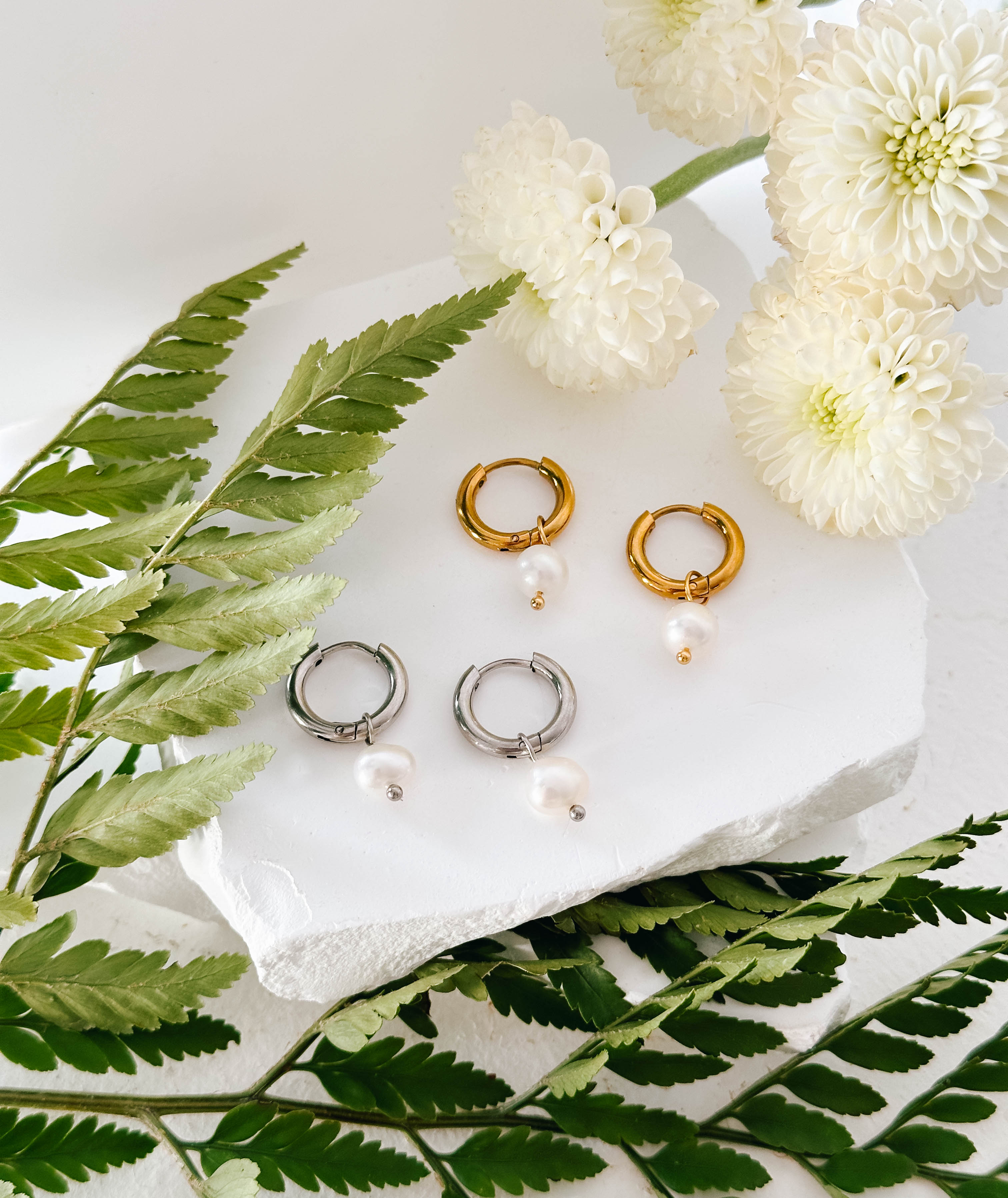 materials: surgical grade stainless steel, 18k gold-plating (for gold pairs) + freshwater pearls