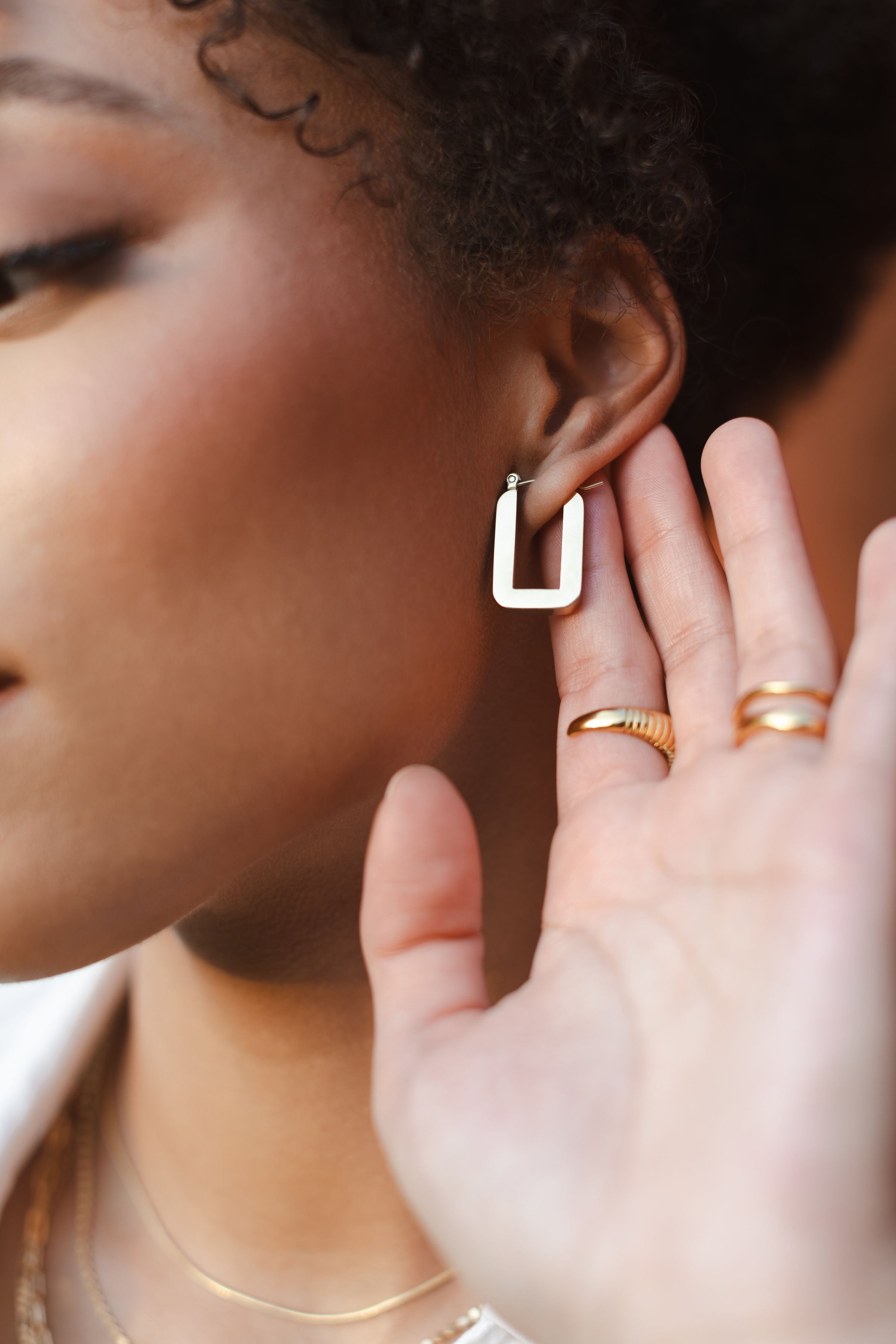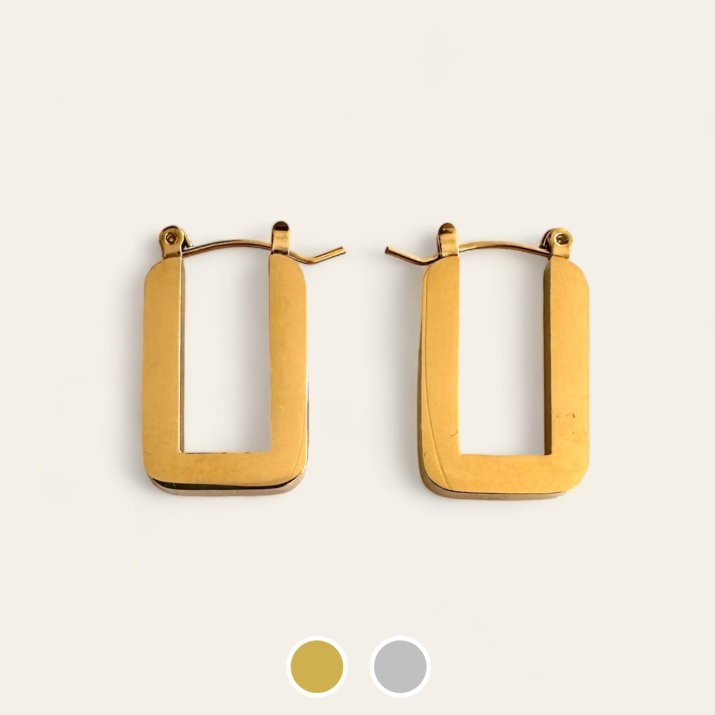 meet our best-seller, marlee. classic, every day rectangle hoops available in gold and silver.