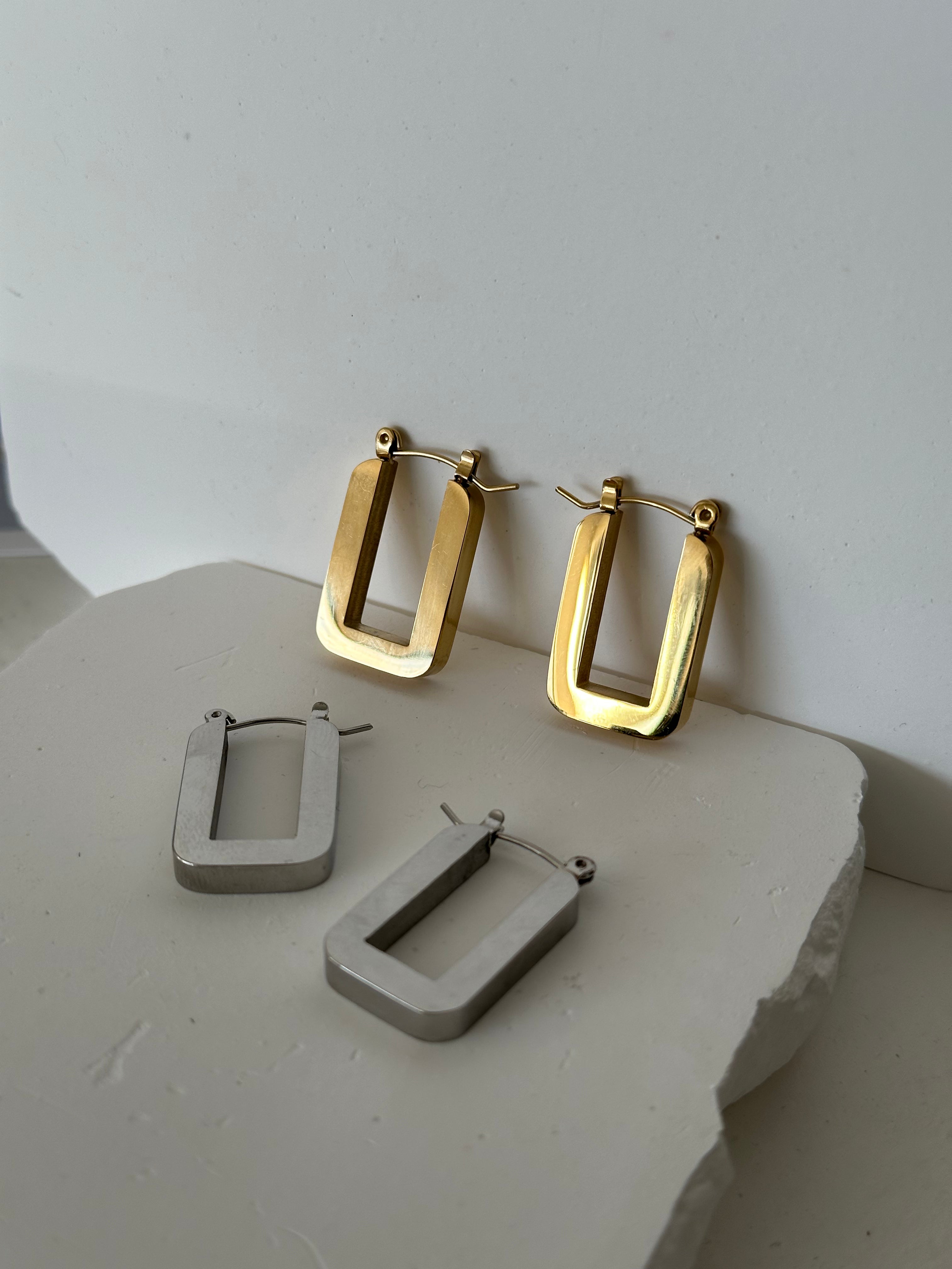 materials: surgical-grade stainless steel + 18k gold-plating (gold hoops)