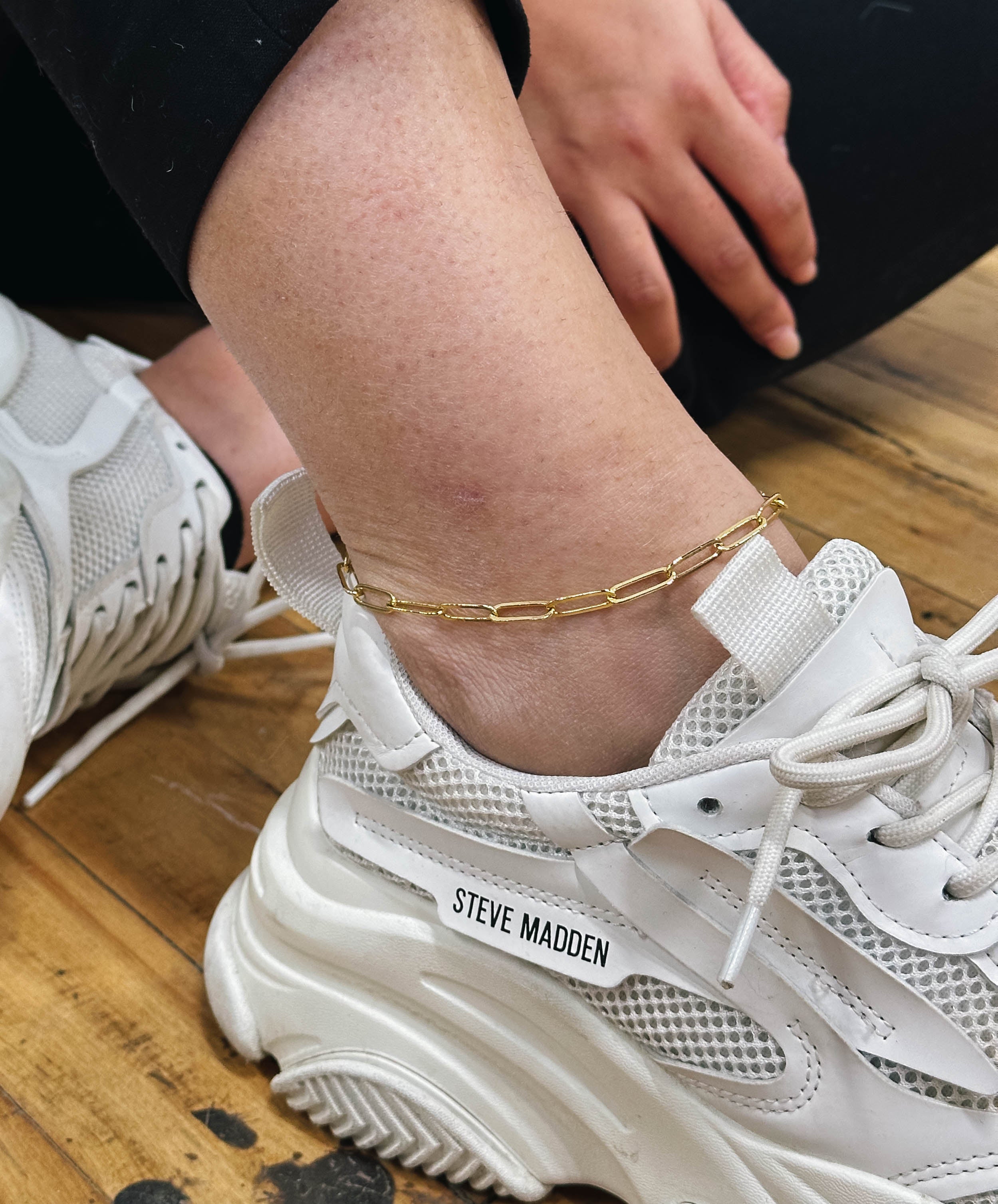chunky shower safe paperclip anklet. durable and perfect for every day wear. match it with our phoebe necklace and bracelet.