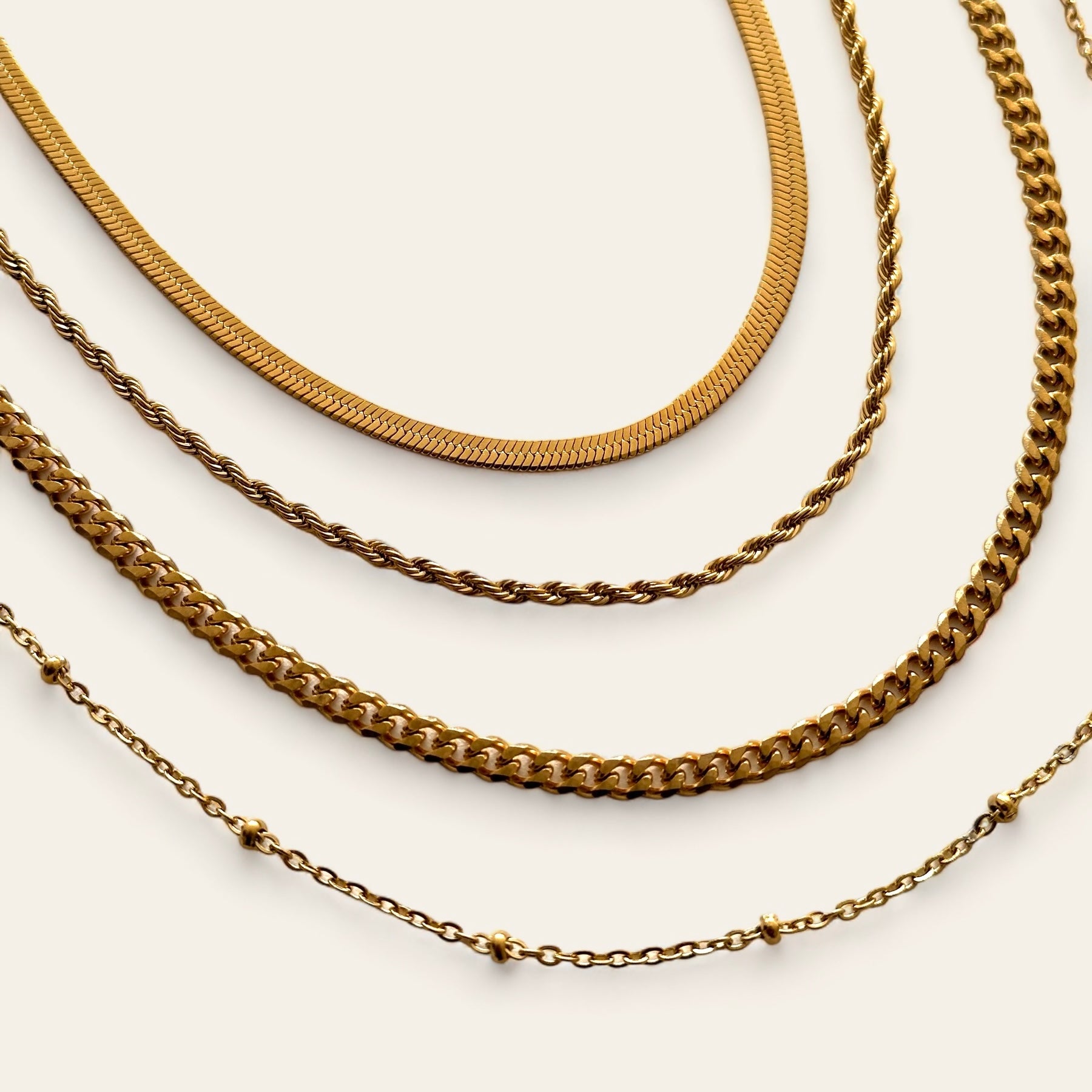 your dream stack, with a multi-chain discount. includes our 4 best-selling gold-plated necklaces. please note these are 4 separate chains, and you can purchase each individually here.