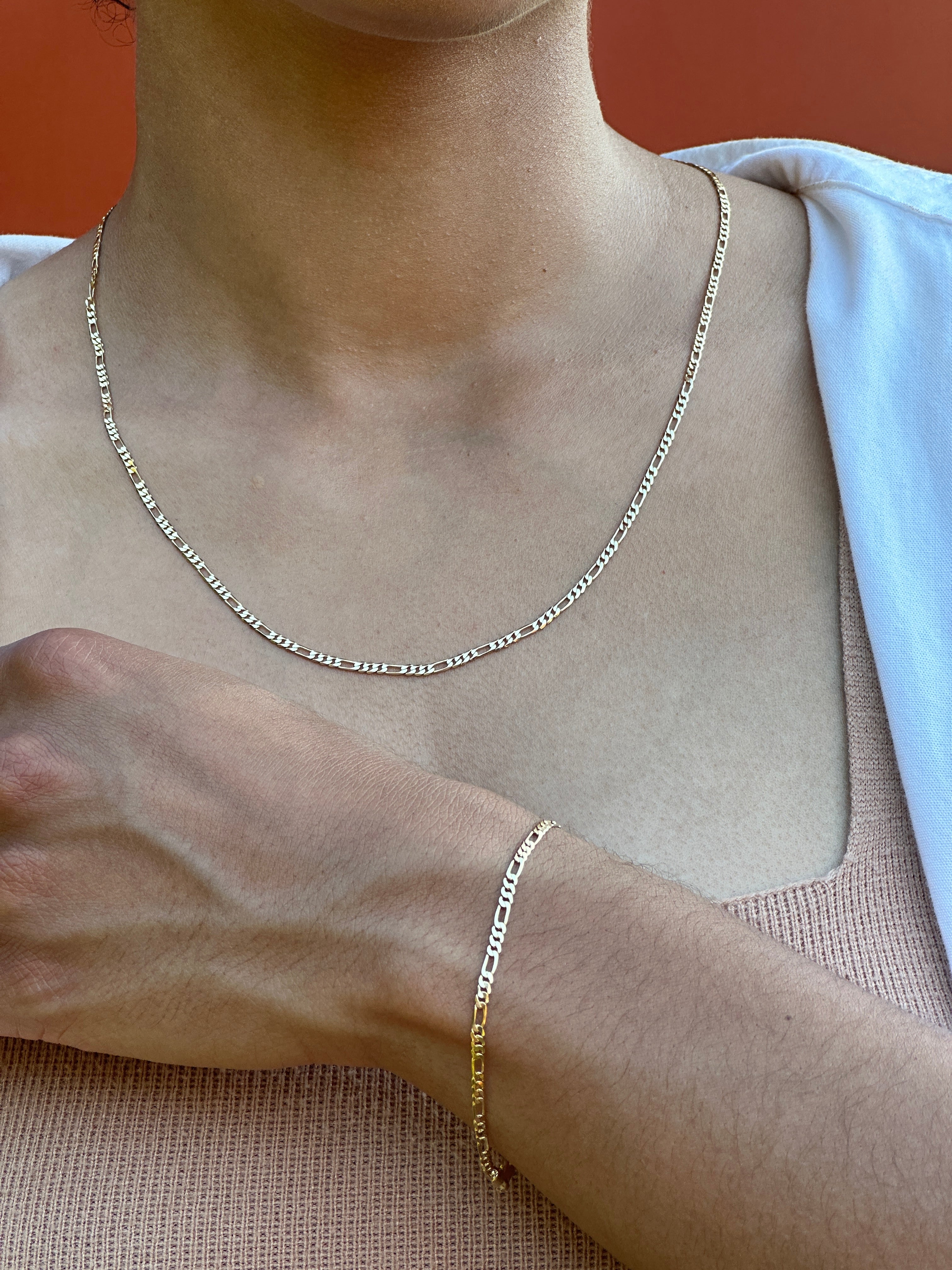 shower safe figaro link bracelet. match it with our theo necklace.