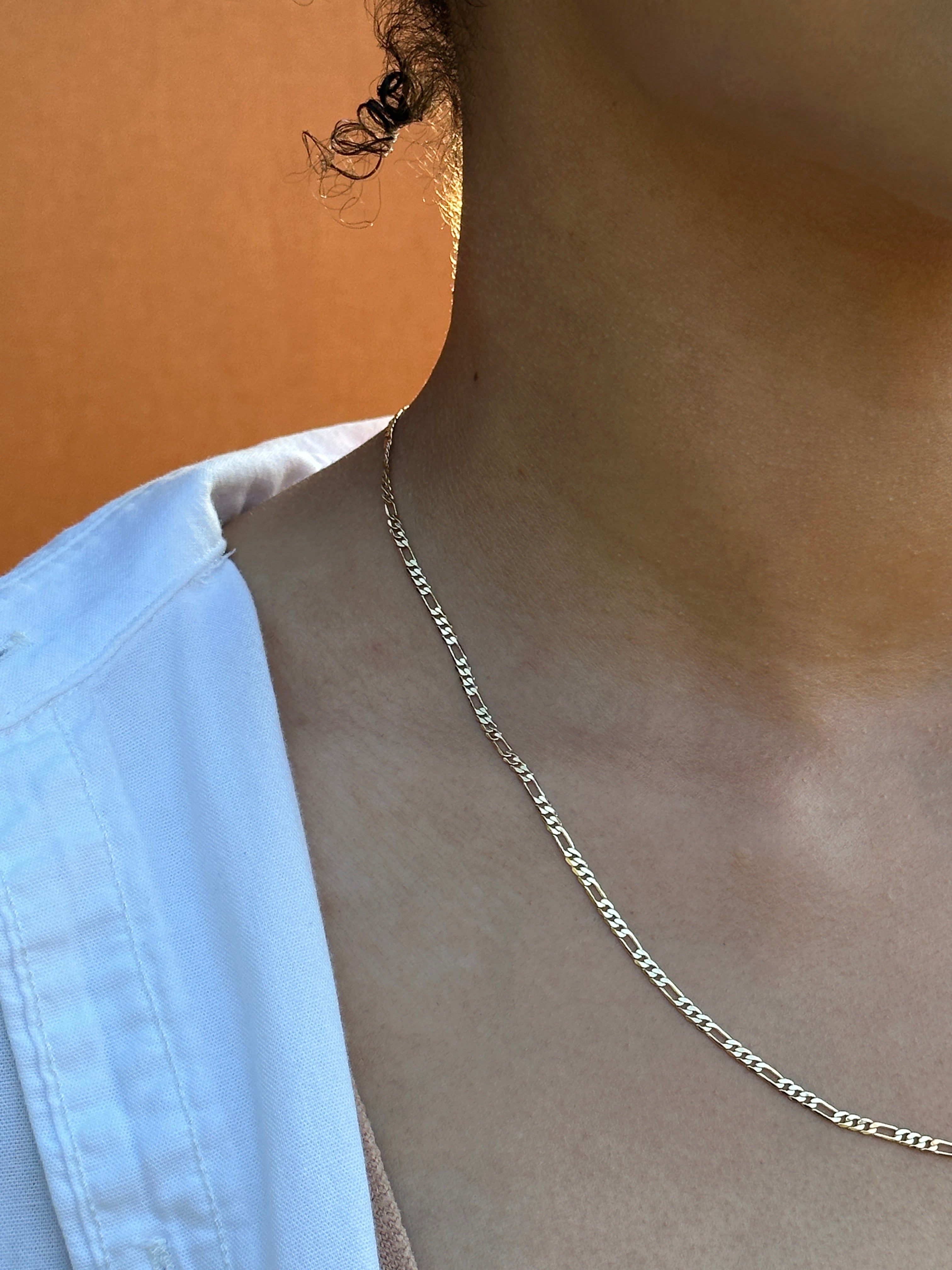 unisex shower-safe figaro chain. beautiful on its own or check out our gold-filled layered set and theo bracelet.